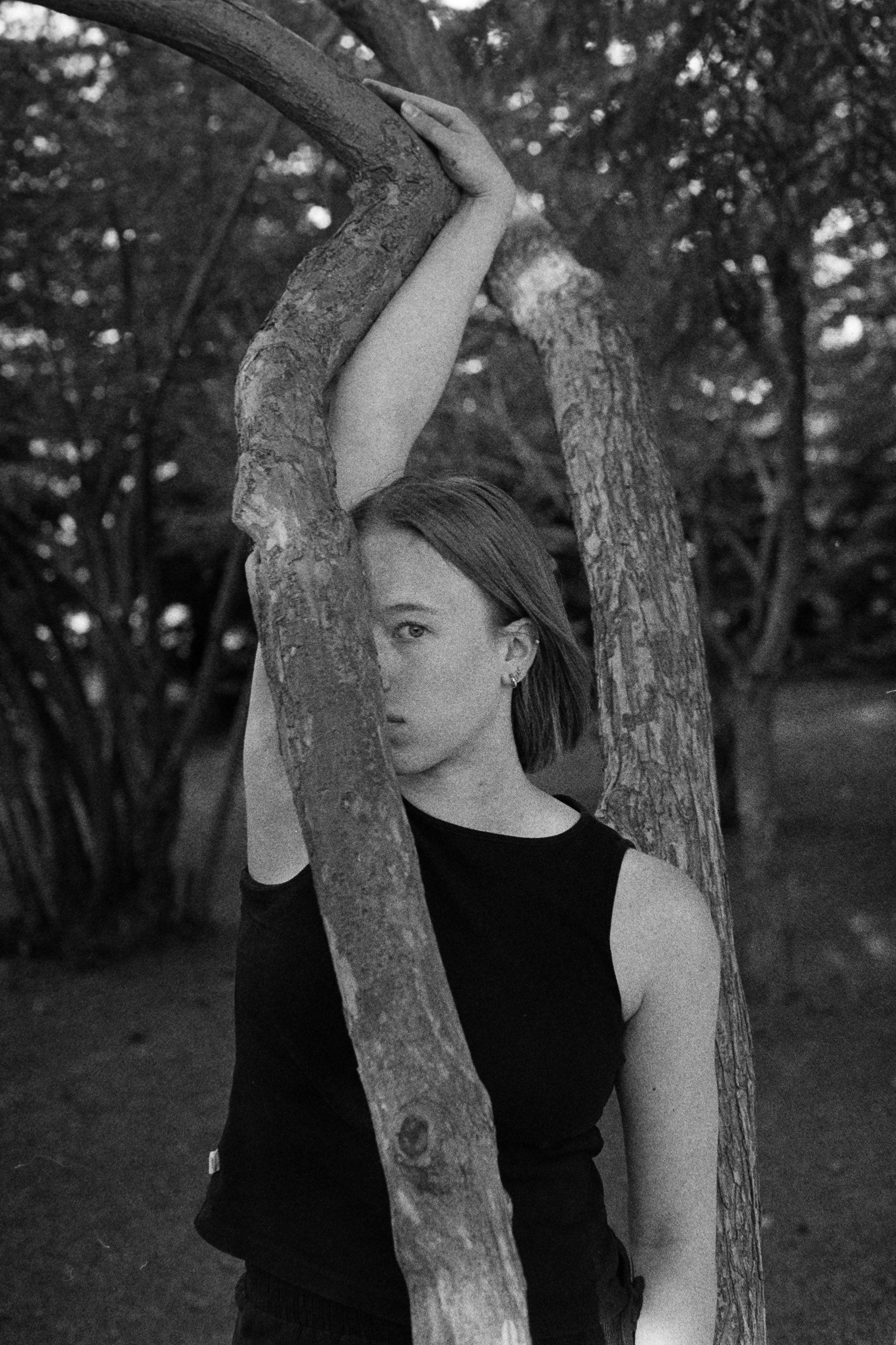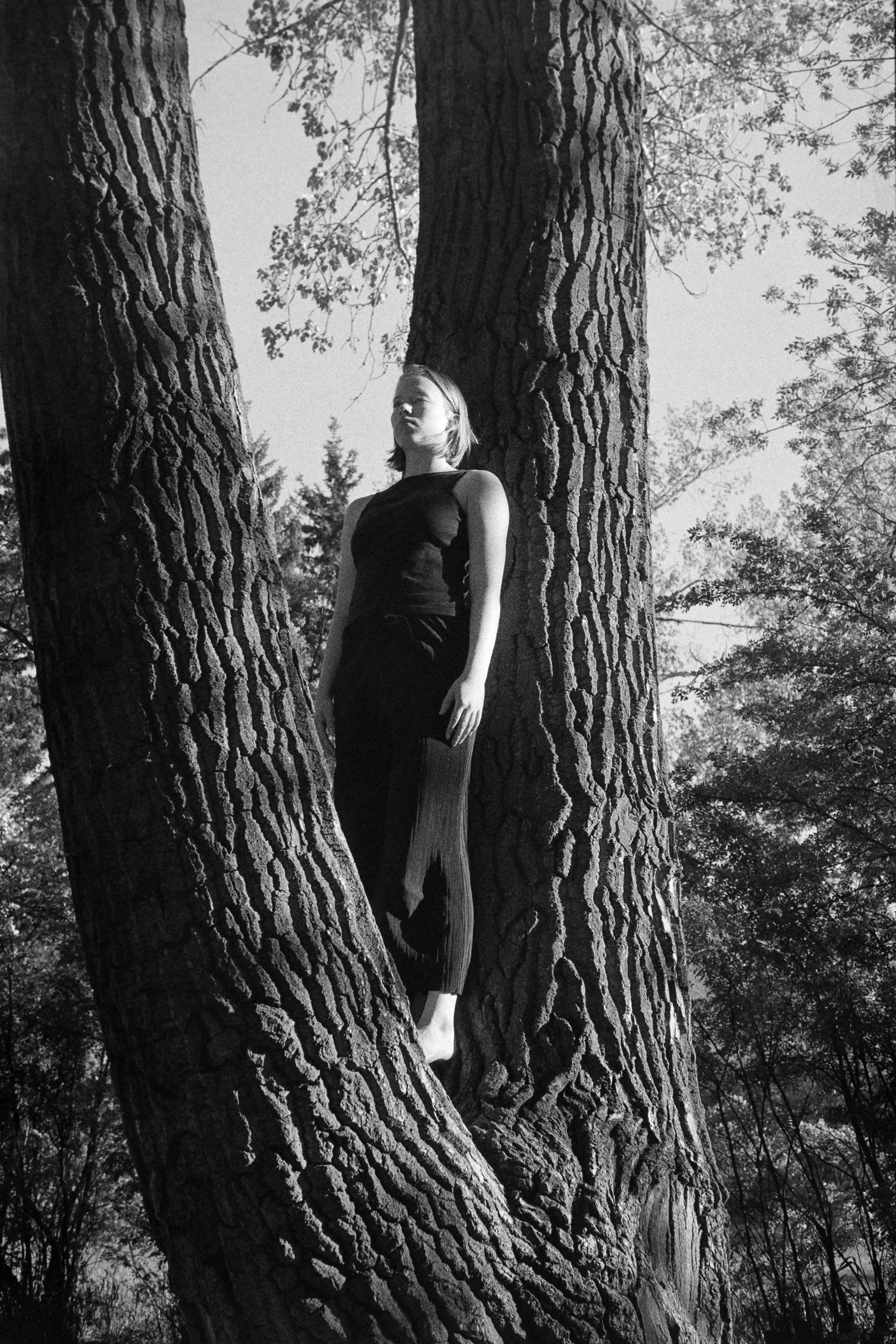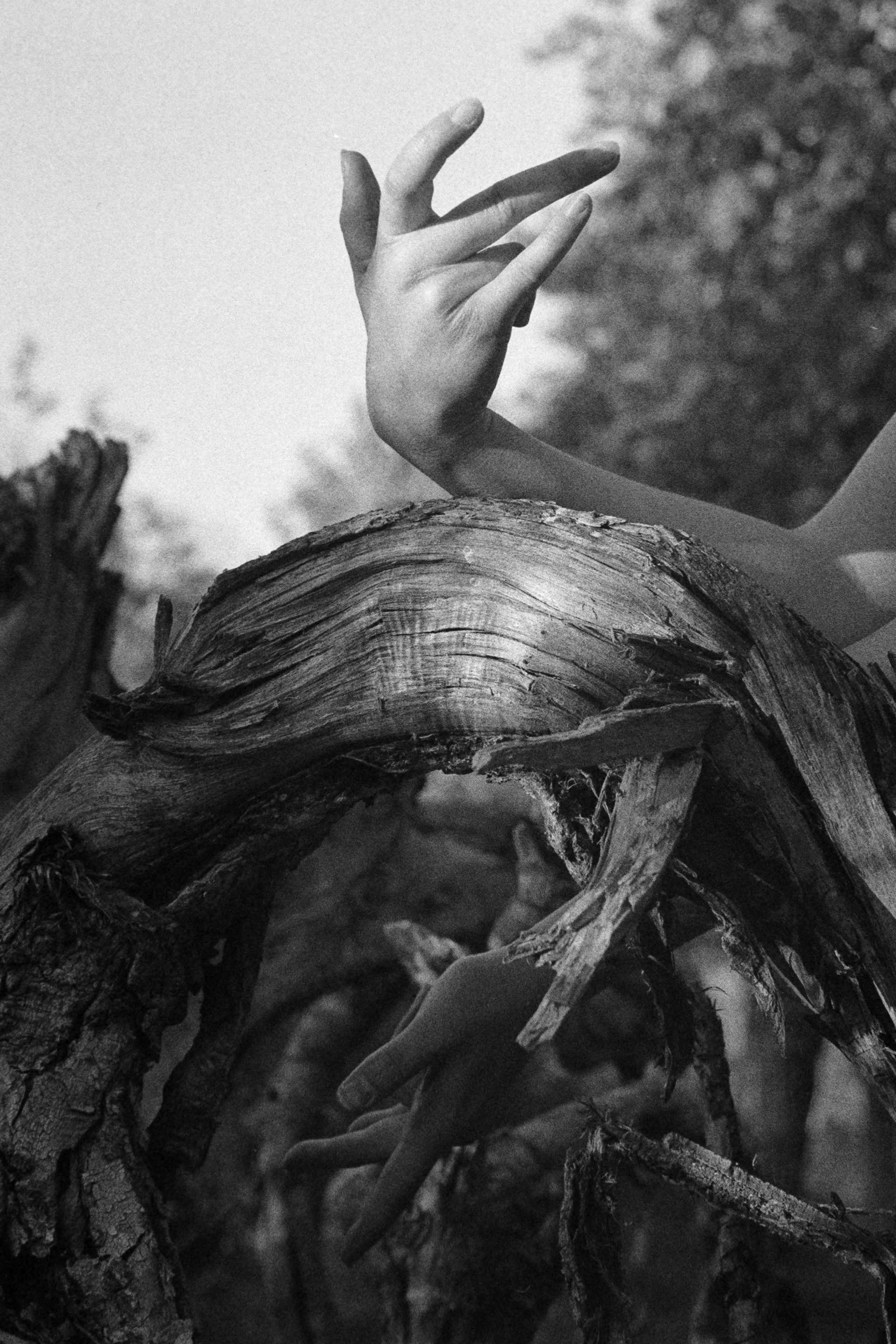 This series, titled Chameleon, explores the dissonance in how humans relate to our environments, both natural and built. Each hand-printed image was created on 35mm film in collaboration with my sister, a dancer, as the subject. Together, we explored movement as a way of reintegrating the human body with its surroundings. In these images, the subject becomes camouflaged, echoing a chameleon folding back into its environment. This act of blending with place challenges the common paradigm of human separation and superiority over nature. Chameleon invites viewers to reconsider our relationships with the world around us and to reflect on the need for deeper, more reciprocal connections in an increasingly divisive age.